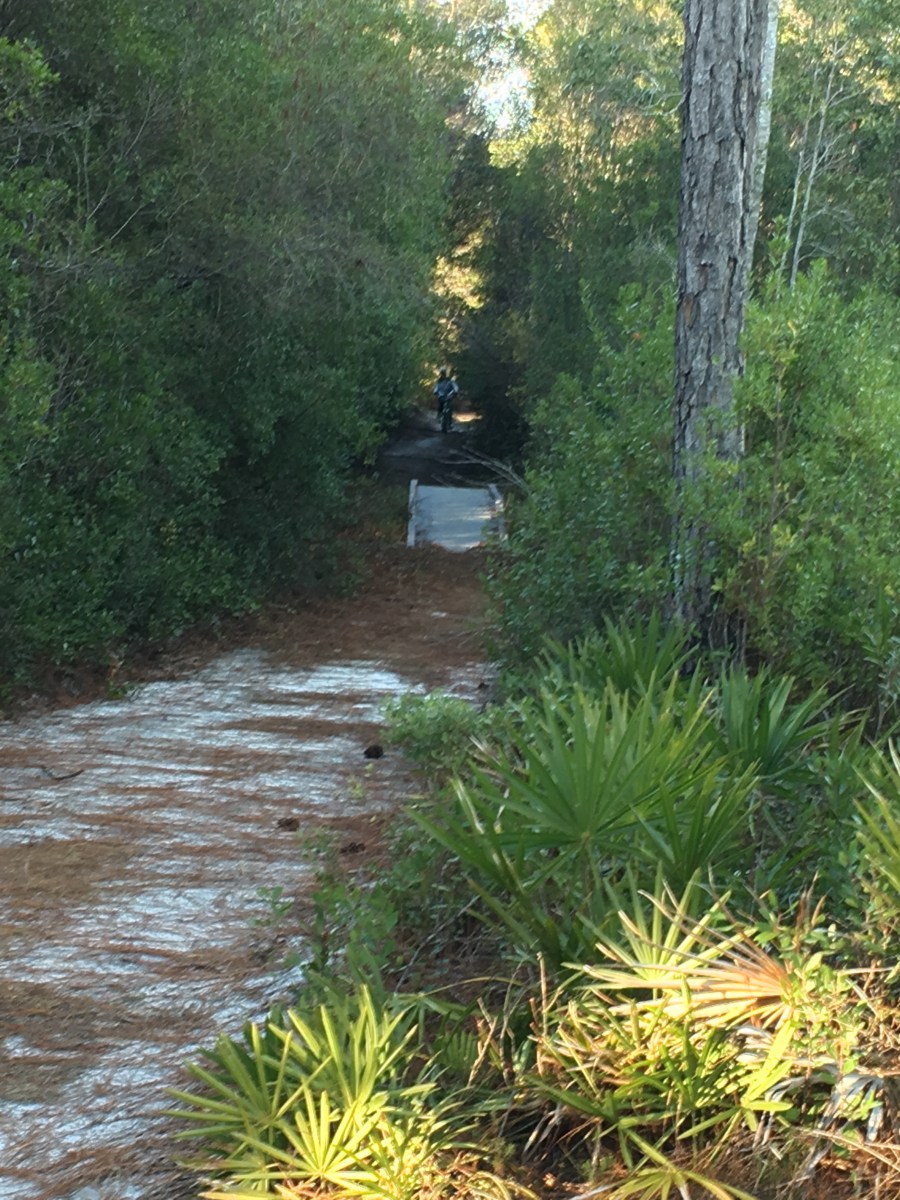 FL Kim approaching the bridge on bike
