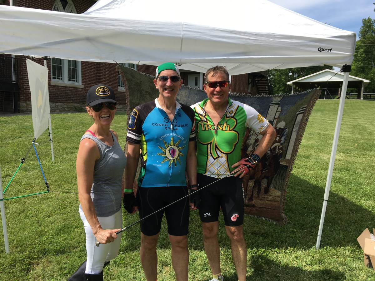Mike and Glen getting our pins for completing the 100 miles.