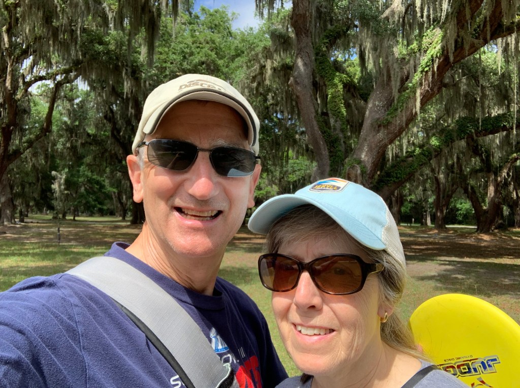 On St. Simons Island, we played disc golf at Gascoigne Bluff. This was not part of the official tour. We played well on the course as liked learning the history of the area. The bluff was one of the first possible landing areas for a ship entering the harbor in Georgia. Gascoigne Bluff was the headquarters for a military invasion (if you were paying attention in July 1742), a Sea Island cotton plantation, the site of a lumber mill and a shipping point for timber. We played under a forest of live oak trees. It is interesting to think that live oak timbers from this area were used to build “Old Ironsides,” the U.S.S. Constitution