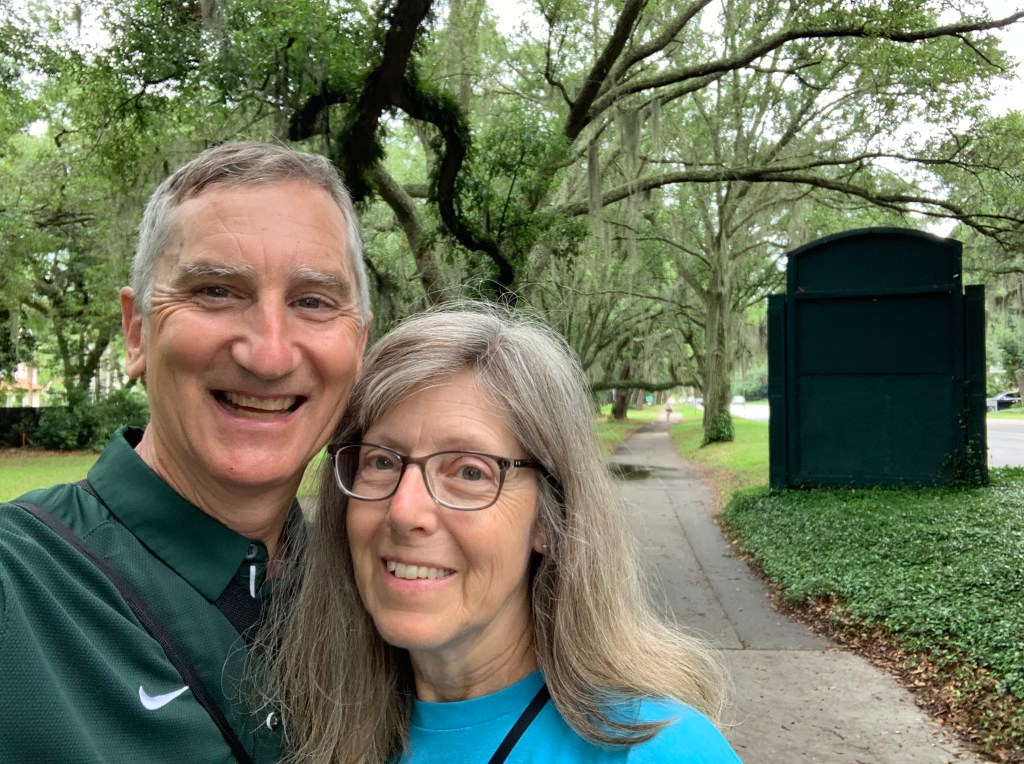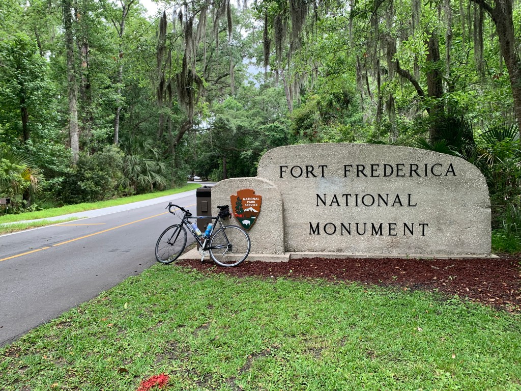 Since I had not heard of the islands prior to the trip, I did not remember a battle from 1742 or the National Park Service Fort Frederica National Monument, which preserves archeological remnants of a  British colony and its defense against Spain. The purpose of the fort reminds me of cold war deterrence by strategically placing (weapons, missiles…forts) military installations away from population areas and near the perceived threat to protect possible invasion by that potential enemy. We enjoyed the tour and were happy to be inside during a rainstorm. The bicycle tour was timed just right for an inside visit of the fort, and then the rain passed for an outside tour and ride back to our hotel.