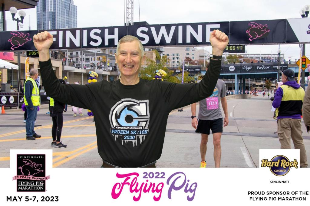 I began training in 2022 for all of the runs (“races”) that I did virtually in 2020. I wrote about my training for the Cincinnati Flying Pig half-marathon in 2020 and then, due to COVID, running virtually (but still running) in my neighborhood. I am thankful that it was an option. However, running loops in my neighborhood does not compare to running an in-person race, so I was determined to run the formerly virtual events in person.
