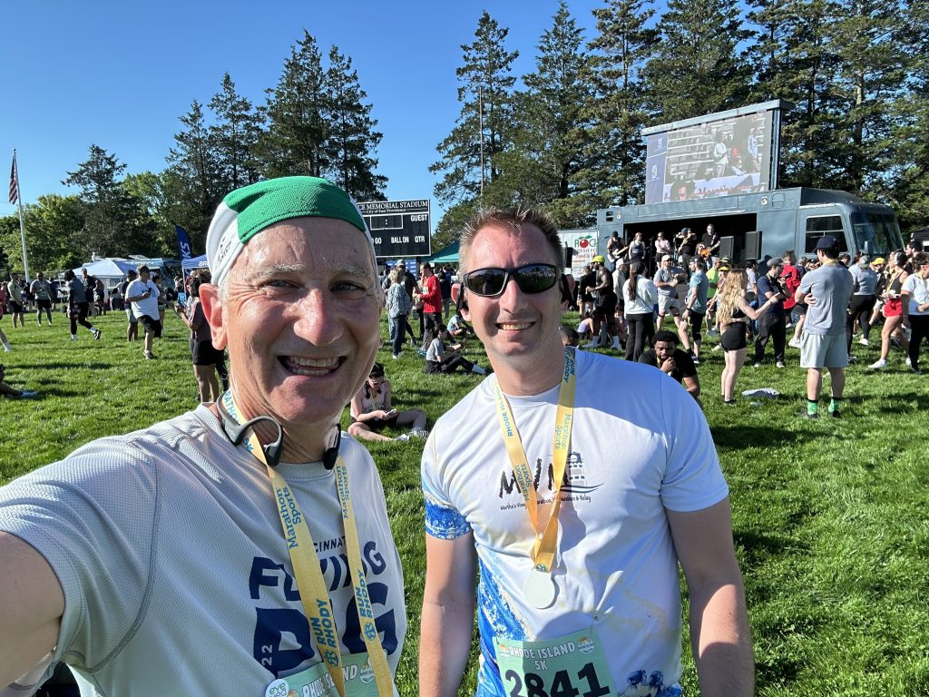 My two oldest children and I ran the Rhode Island 5k and half marathon in May, two weeks after the Flying Pig. I ran the 5k, having already participated in a half marathon in May. My buddies tell me it would be no problem for me, but I was happy to run on the bike path and streets for a 5k and not the half marathon.